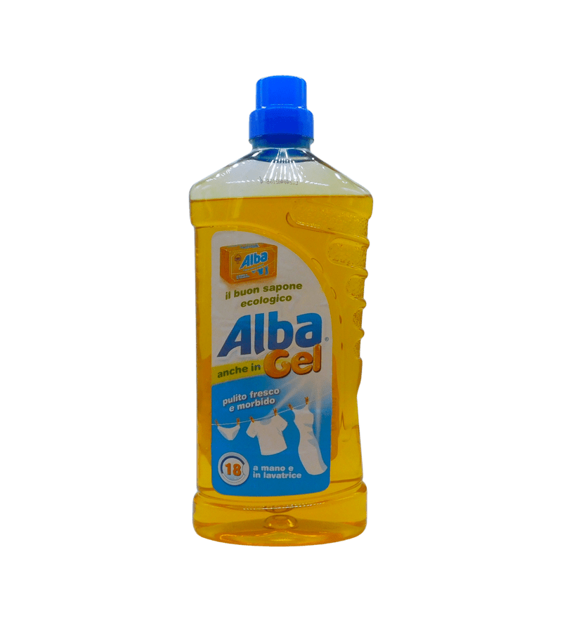 Alba Gel ökologisches Waschmittel mit frischem und weichem Duft. Geeignet für Hand- und Maschinenwäsche. Respektvoll zur Haut und Umwelt – 18 Waschgänge.