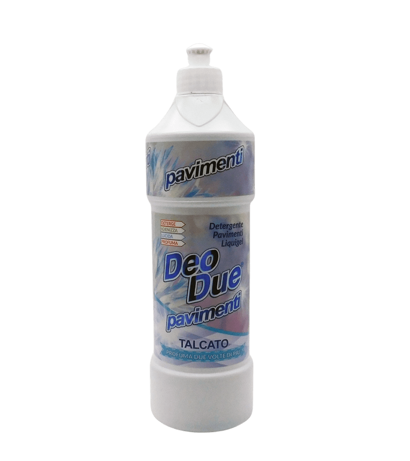 Der Deo Due Bodenreiniger Talcato ist ein Liquigel-Reiniger, der Ihren Böden ein sauberes Aussehen verleiht und gleichzeitig einen sanften Talkumduft hinterlässt. Reinigungs- und Duftleistung in einem.