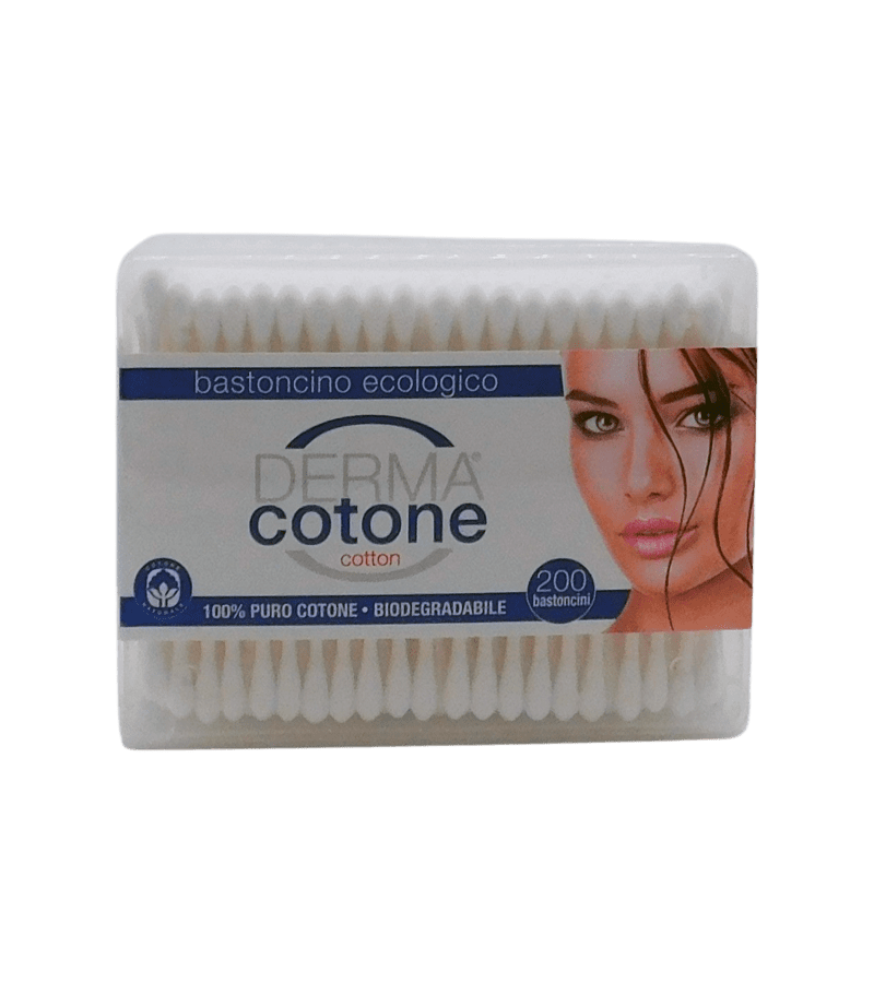 Derma Wattestäbchen (200 Stück) bestehen aus 100% reiner Baumwolle und sind biologisch abbaubar. Ideal für die tägliche Hygiene und besonders sanft zur Haut. Ökologisches Produkt mit praktischer Box.