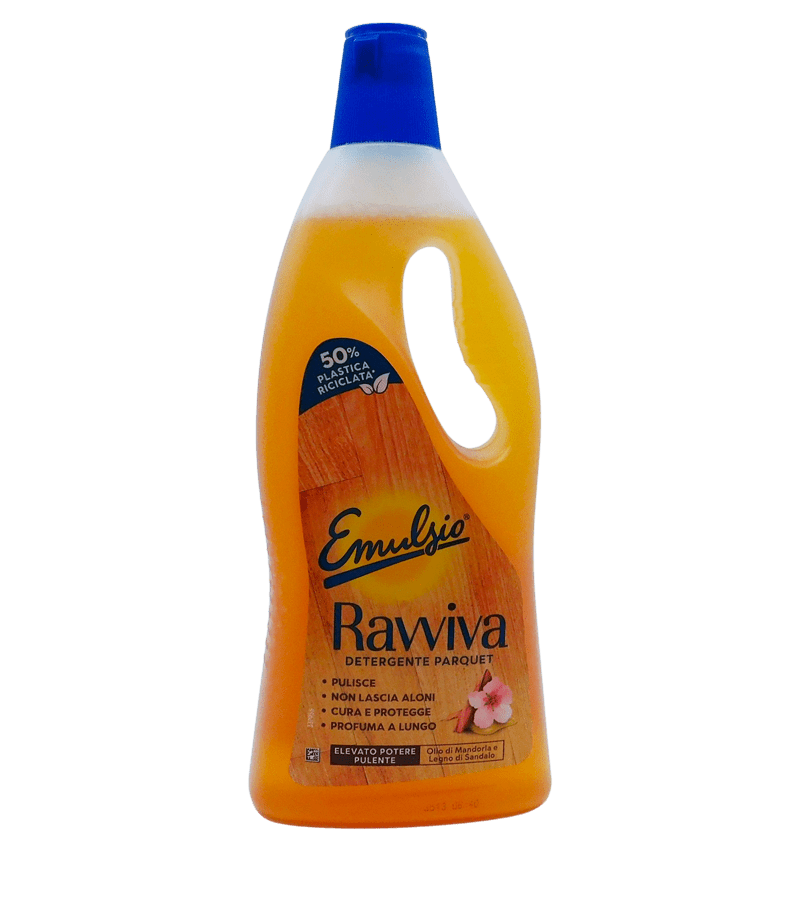 Emulsio Ravviva ist speziell für Parkett und Holzböden formuliert. Es reinigt gründlich, schützt das Holz und hinterlässt keine Schlieren. Mit pflegendem Mandelöl und dem Duft von Sandelholz sorgt es für langanhaltende Frische.