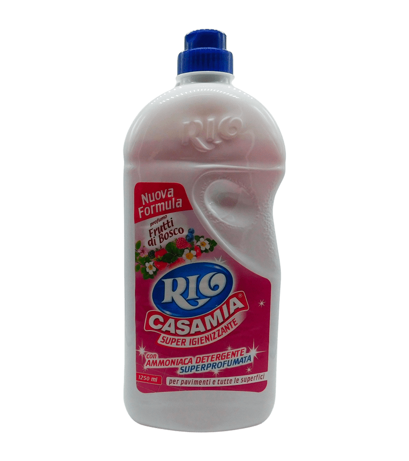 Rio Casamia Ammoniak-Reiniger mit antibakterieller Wirkung und mediterranem Frischeduft. Ideal für Böden und alle Oberflächen. Die neue Formel bietet maximale Reinigungsleistung kombiniert mit einem intensiven Duft.