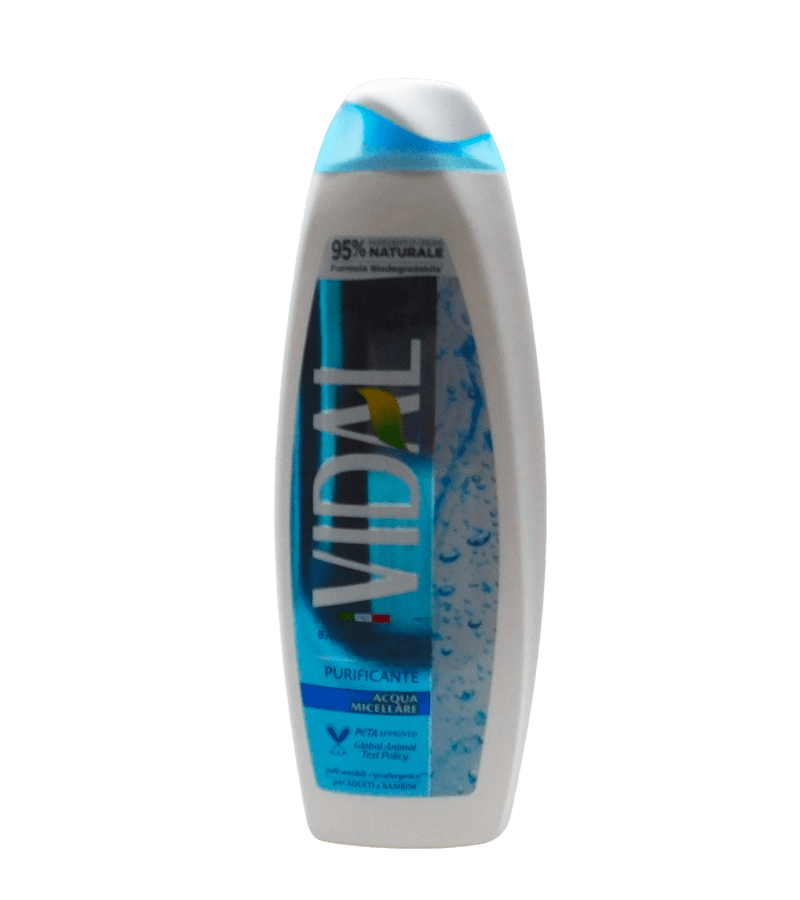Das Vidal Duschgel mit Mizellenwasser (500ml) reinigt die Haut sanft und effektiv. Mit 95% natürlichen Inhaltsstoffen und einer biologisch abbaubaren Formel ist es besonders geeignet für empfindliche Haut. Für Erwachsene und Kinder geeignet, dermatologisch getestet.